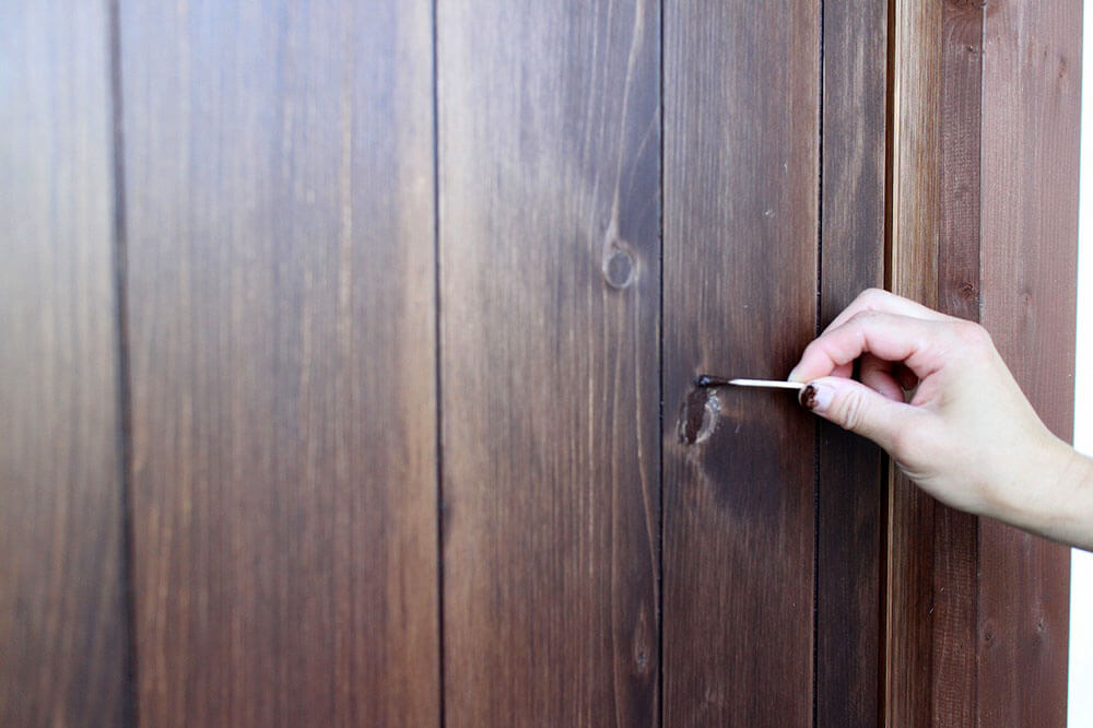 綿棒を使い、白くなった部分に着色。そしてウエスで拭き取ります。